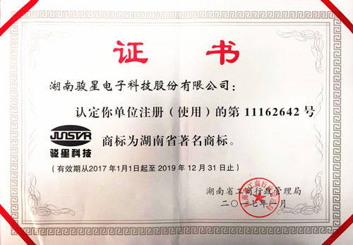 著名商标)湖南骏星电子科技股份有限公司著名商标证书