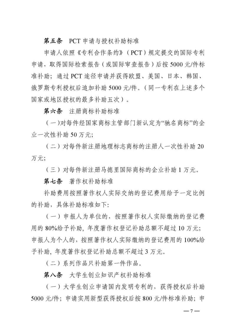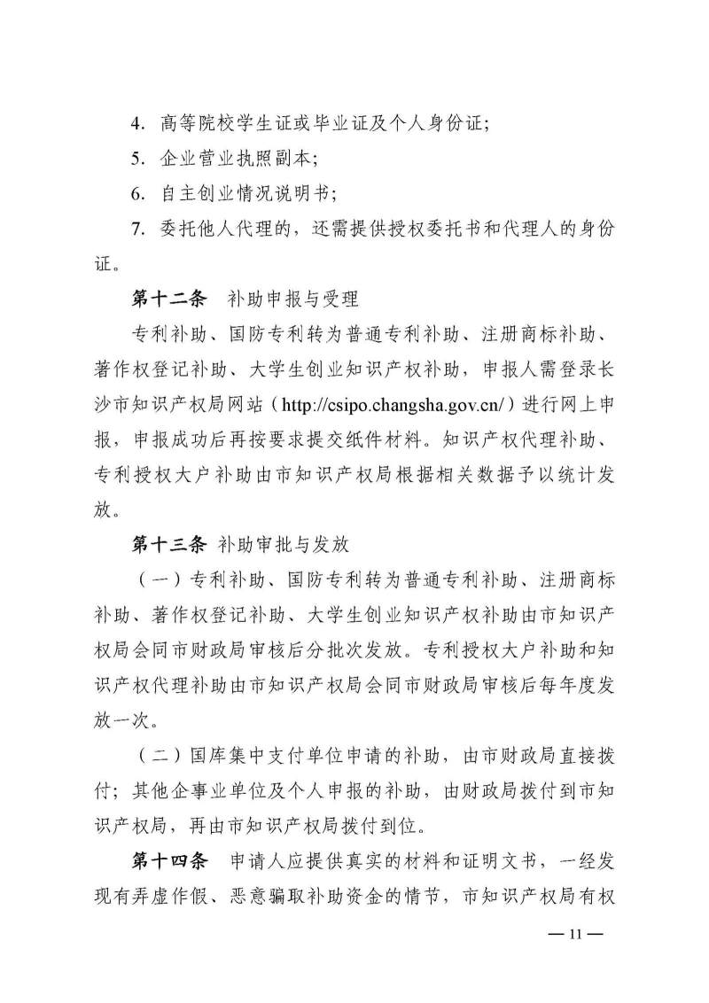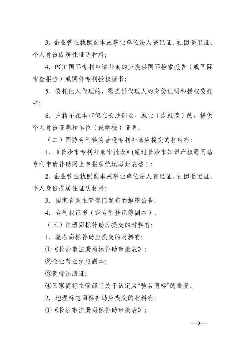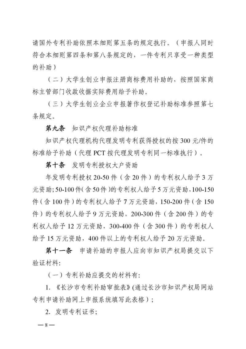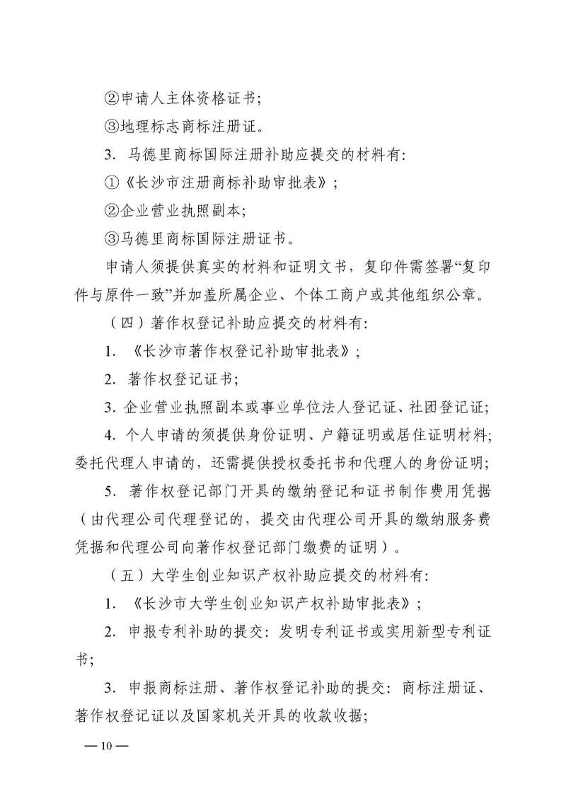 长沙市关于印发《长沙市知识产权补助实施细则》的 通知