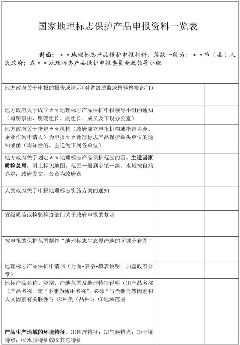 地理标志保护产品申报材料清单