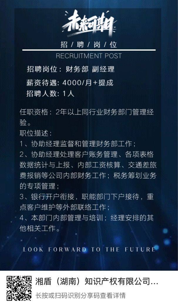 任职资格:1年以上工商税务或知识产权行业团队管理经验。